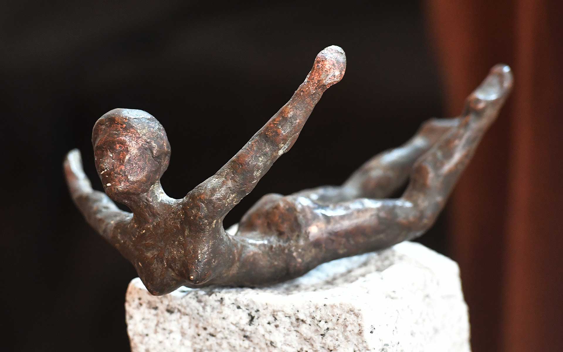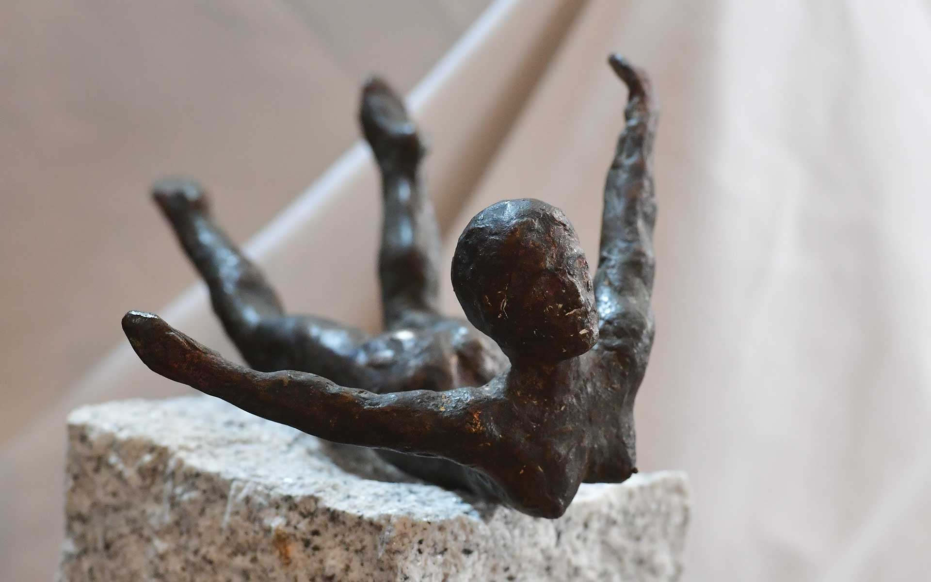 Ausbalanciert auf einem Punkt in der Körpermitte scheint diese Figur leicht und befreit zu schweben.